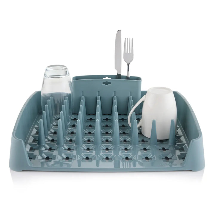 Streamline your washing and drying routine with the Minky Dish Drying Rack & Cutlery Holder. This innovative storage system boasts a multi-position cutlery holder, making dishwashing a breeze. The versatile holder allows you to store cutlery and utensils wherever suits you best or remove it entirely to make room for larger items. Its smooth, non-scratch draining prongs allow you to stack pots and pans in a variety of ways while ensuring quick and efficient water drainage. Proudly designed and made in the UK, this sturdy dish rack is built to last and easy to clean.