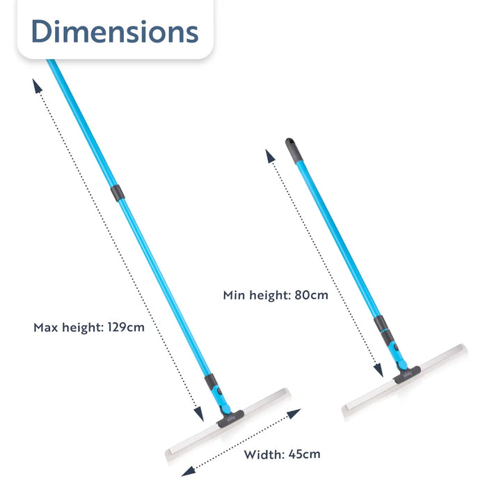Minky Flexi Edge Blade Floor Sweeper is perfect for smooth floors and carpet, capturing dust and pet hair effortlessly. Its flexible, rubberized blade and tapered edge ensure precise cleaning, leaving nothing behind. With a 180-degree swivel head, it easily cleans under furniture. This multifunctional sweeper is ideal for carpets, gathering human/pet hair and also works on windows and showers. The telescopic handle extends for comfortable use and retracts for compact storage. Experience easy, thorough cleaning with this versatile, all-in-one floor sweeper.
