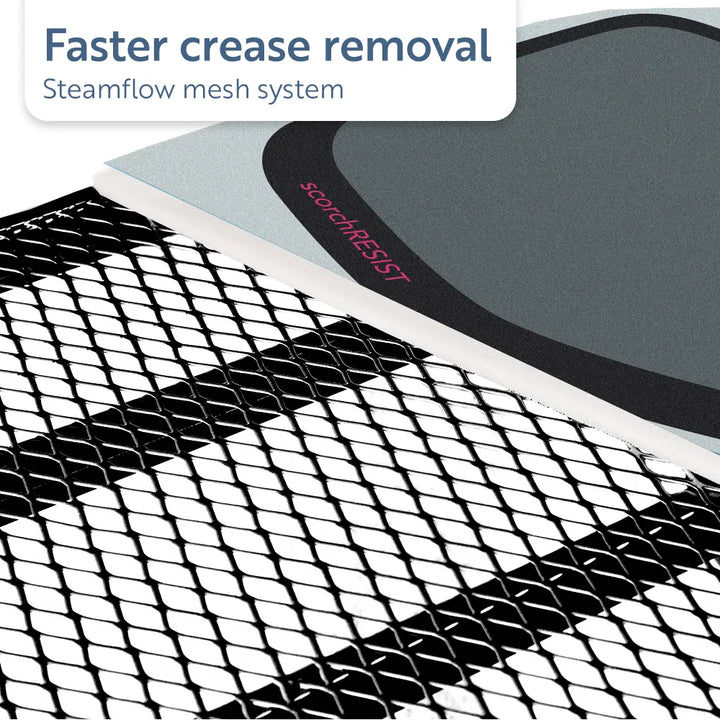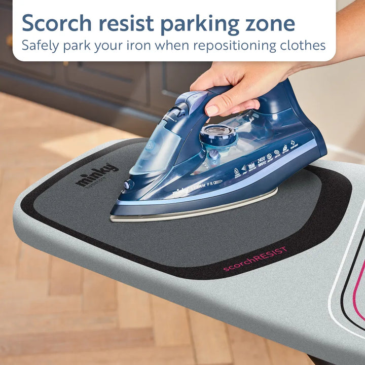 - Scorch-resistant zone: Safely park your iron while repositioning clothes without worry