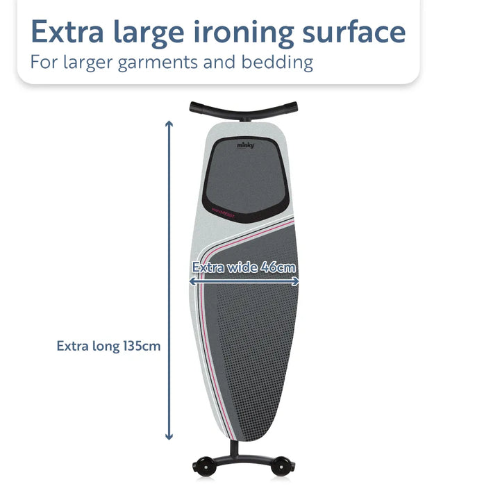 - Extra large ironing surface – 135 x 46cm perfect for larger garments and bedding