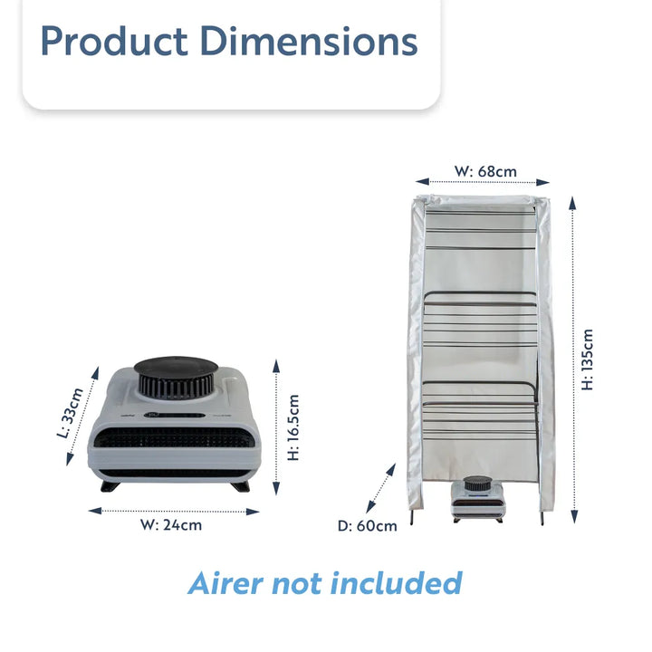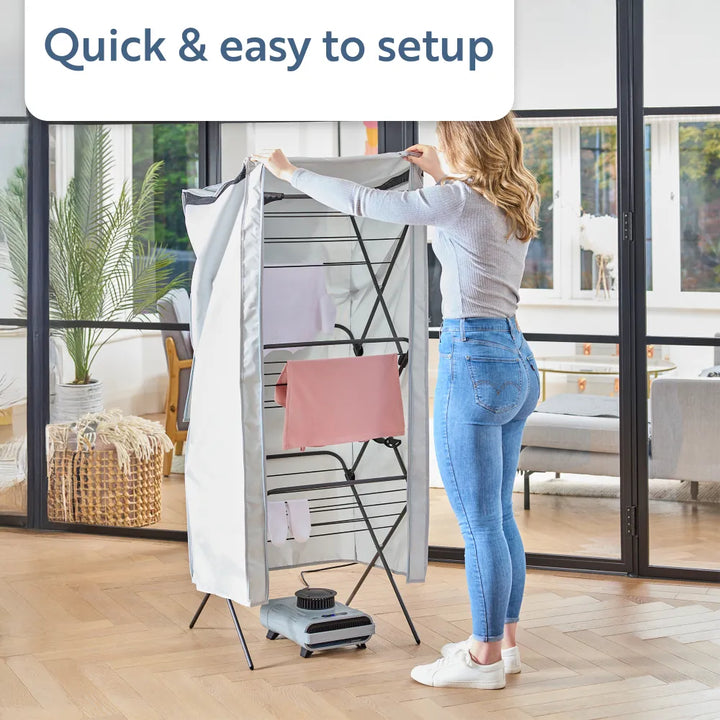 - Gentle on clothes: Kinder to fabrics than a tumble dryer with variable temperature and timer settings for added control.