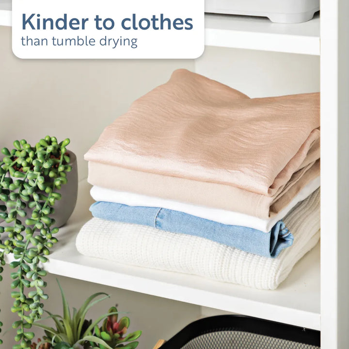 - Gentle on clothes: Gentler on fabrics than a tumble dryer, helping preserve clothing quality.
